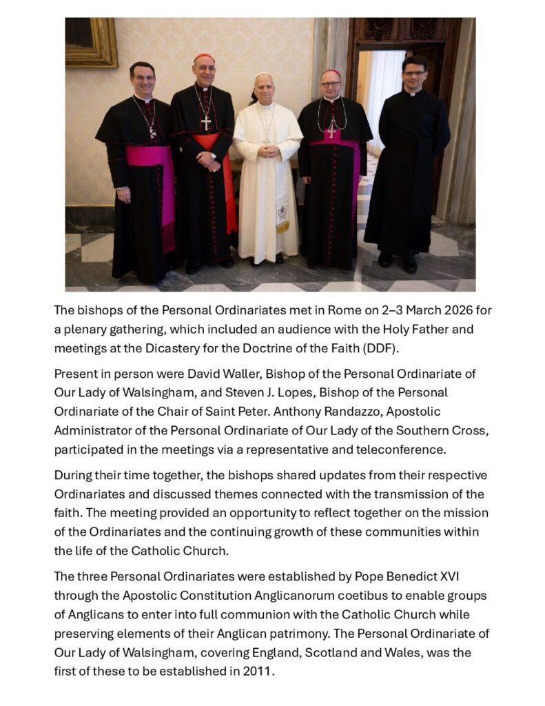 Daily live streamed Mass, up to date news and a special message from Bishop David Waller can be found on the website of The Ordinariate of Our Lady of Walsingham https://www.ordinariate.org.uk/